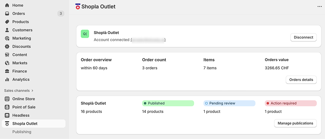 Overview of your outlet orders and status of your outlet products within the app.